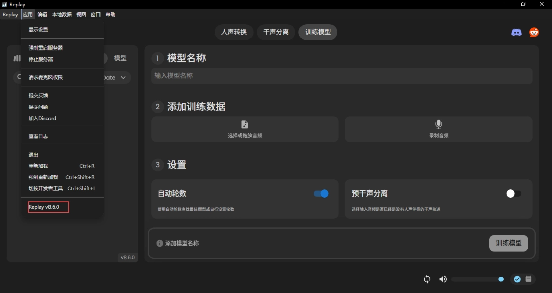 Replay 是一款功能强大且极具创新性的 AI 音频处理工具,它集模型训练、AI 翻唱、音频分离等多种先进功能于一体,为广大音频爱好者与专业创作者带来了前所未有的便捷体验,但是由于Replay是国外开发者开发,目前没有内置其他语言版本,导致很多国内用户无法正常使用,所以今天我们推出了Replay的汉化补丁,简单替换原始文件就可以把英文版替换为中文版,汉化补丁下载和补丁的安装方法请查看下面内容。
