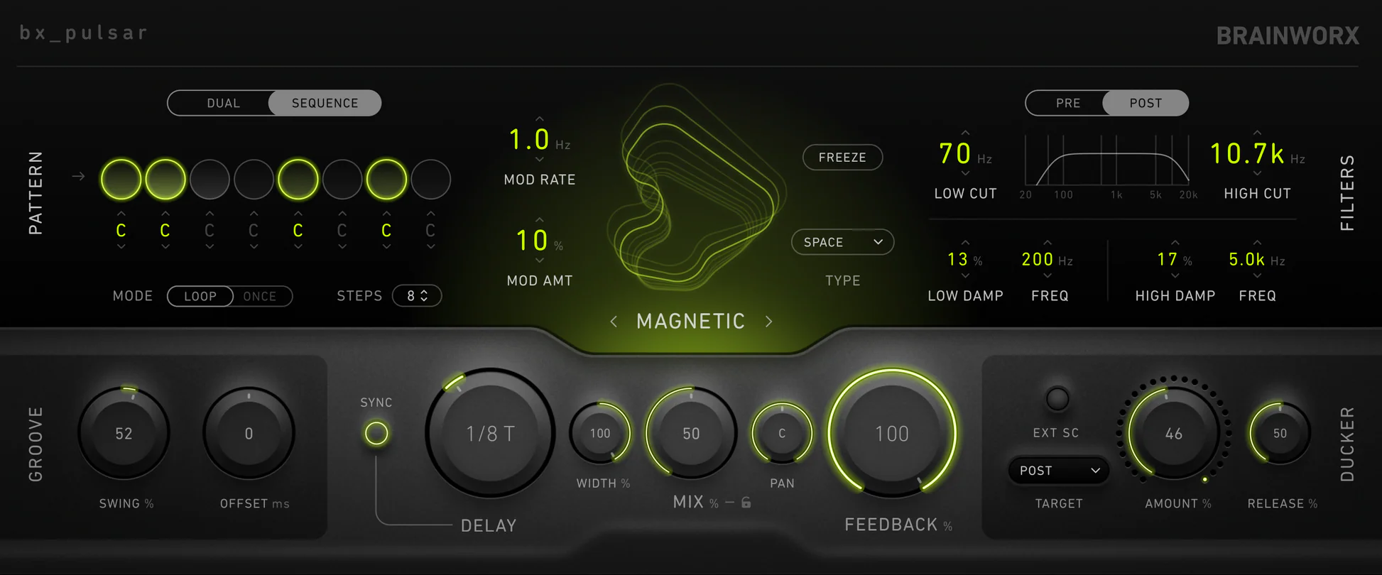 在音乐制作的世界里,延迟效果器是塑造空间感、丰富音色层次的核心工具,而由 Brainworx 联手 Plugin Alliance 推出的 bx_pulsar 插件,无疑是延迟类插件中的 “创意多面手”。作为一款旗舰级创意延迟效果器,它打破了传统延迟工具的功能边界,将复古质感与先锋创意融为一体,既能精准复刻经典音色,又能催生颠覆性的声音表达,成为制作人、混音师及音乐爱好者的 “灵感催化剂”。