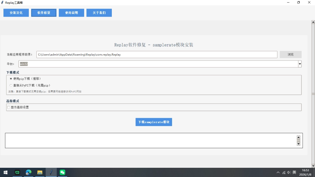 - 智能版本识别:自动检测您安装的Replay软件版本,精准匹配对应汉化资源